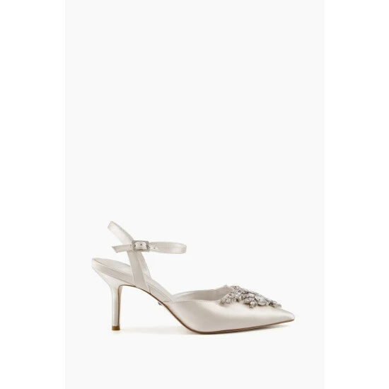 Their Destinee heels are the perfect combination of glamour with elegance. This high style offers a sleek silhouette with an ornate crystal brooch.