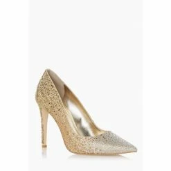 Dune London Gold Banquet Mesh Cut Out Court Shoes